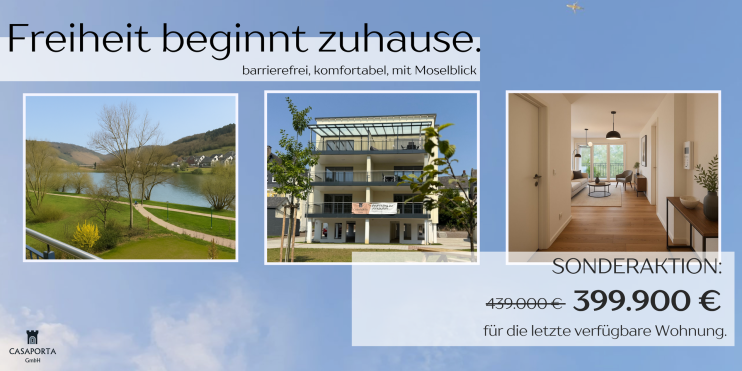 Unser privilegiertes Wohnprojekt in erster Reihe zur Mosel bietet Ihnen ein einzigartiges Zuhause mit traumhafter Lage, Barrierefreiheit und hochwertiger Ausstattung.